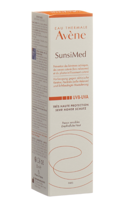 Das SunsiMed-Medizinprodukt bietet einen sehr hohen Sonnenschutz, der als Komplettlösung für gefährdete Haut entwickelt wurde, die der Sonne ausgesetzt ist. Nachgewiesene Wirksamkeit gegen die schädlichen Wirkungen der Sonne zur Vorbeugung von aktinischen Keratosen, Hautkrebs (außer Melanomen) und lichtbedingter Hautveränderung. Dank seines exklusiven Schutzkomplexes schützt SunsiMed, ein Medizinprodukt der Klasse I, die Haut täglich vor Sonneneinstrahlung. Dieses Produkt ist ein zertifiziertes Gesundheitsprodukt, das nach diesen Vorschriften die CE-Kennzeichnung trägt.