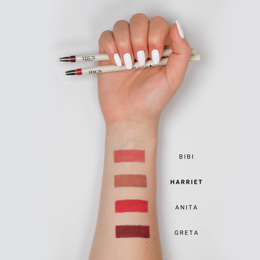 Konturieren und füllen Sie die Lippen mit dem IDUN Minerals Lipliner auf, indem Sie das Präzisionswerkzeug verwenden, um eine definierte Kontur zu erzielen oder die Farbe zu verblenden. Für eine tadellos feine Linie schärfen Sie die Spitze des Liners mit dem eingebauten