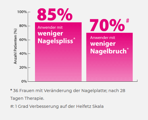 - Wirkt erfolgreich bei leichter und mittelschwerer Nagelpsoriasis (Schuppenflechte auf den Nägeln).
