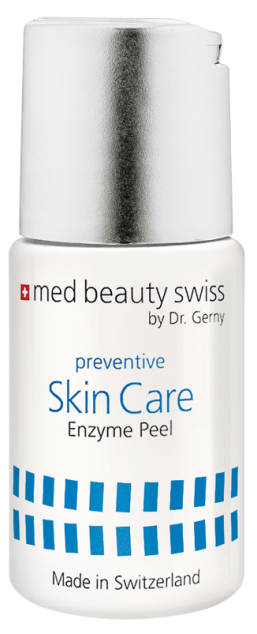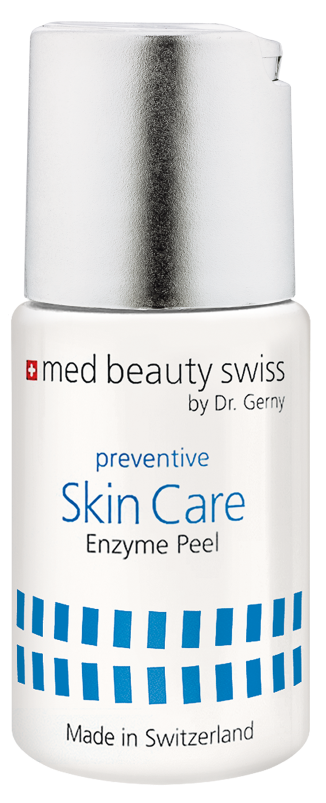 Pflanzliche Enzyme sind hochmolekulare, spezialisierte Proteine, die die Stoffwechselvorgänge in der Haut entscheidend beeinflussen. Die hornschichtauflösende Wirkung des Enzymkomplexes beschleunigt den natürlichen Prozess der Erneuerung und Ablösung der oberen Schichten der Oberhaut. Die Zellerneuerung wird angeregt und führt zu einer jünger aussehenden Haut. Eine biologische Schälung auf der Basis von natürlichen eiweiss- und fettabspaltenden Enzymen löst die verhornten Hautzellen auf und entfernt sie von der Hautoberfläche. Das preventive Skin Care Enzympeeling enthält keine abrasiven Partikel und somit kann eine mechanische Reizung ausgeschlossen werden. Dies ist besonders wichtig bei sensibler, jedoch auch bei unreiner Haut mit Entzündungen, da damit Schmierinfektionen durch Verreiben von festen Stoffen vermieden werden können.