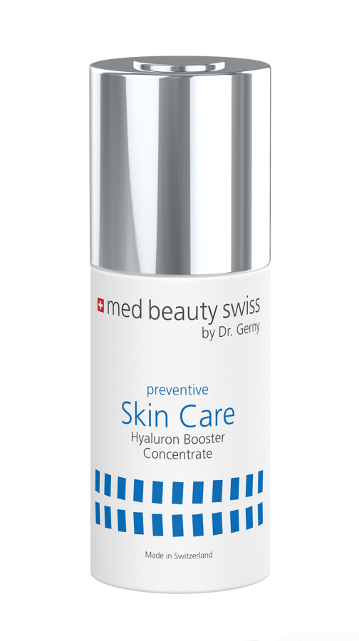 Das preventive SkinCare Hyaluron Booster concentrate ist eine hochkonzentrierte und reine Hyaluronsäure, mit der Fähigkeit bis zu sechs Liter pro Gramm Eigengewicht Wasser zu binden und dabei den Feuchtigkeitsgehalt der Haut deutlich verbessern zu können. Dieses reine Konzentrat mit Langzeit Booster Effekt, kann Fältchen und Linien glätten, und fördert eine prallere Spannkraft, Elastizität und Feuchtigkeitsbindung der Haut.